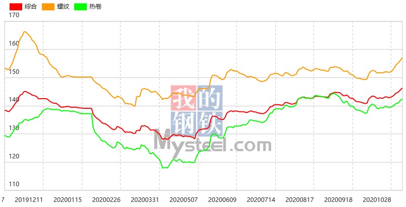 本周Myspic綜合指數(shù)報146.34點(diǎn),較上一周上漲1.69%。其中,長材指數(shù)報163.24點(diǎn),較上一周上漲2.13%。本周建筑鋼材市場價格大幅上漲,全國25個主要市場螺紋HRB400(20mm)均價為3955元/噸,較上周上漲95元/噸。